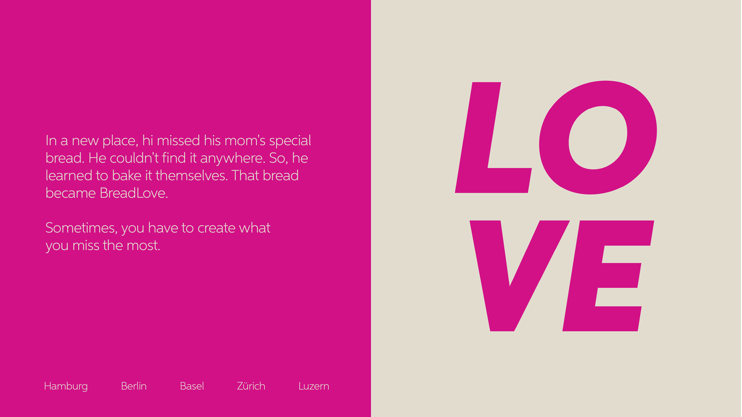 For the client Bread.Love, I had the opportunity to develop the entire social media concept and execute the corresponding photo shoot. Crafting a visually engaging narrative, the social media strategy and imagery worked in tandem to enhance Bread.Love's online presence and communicate its unique brand story effectively.